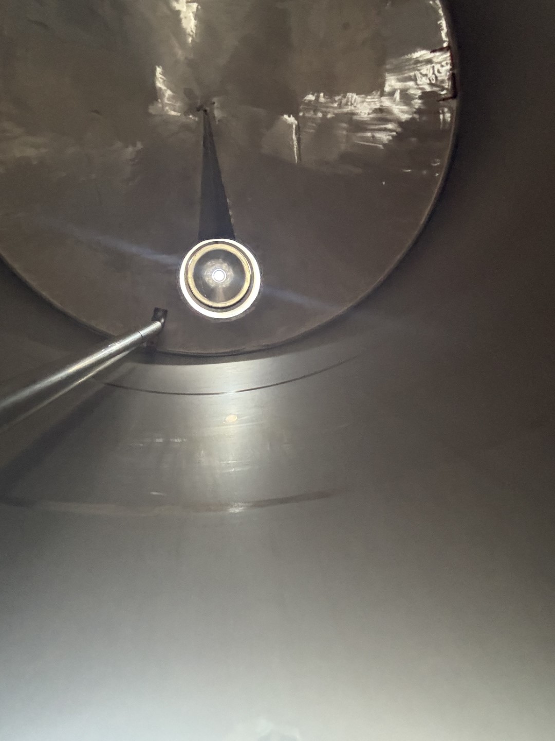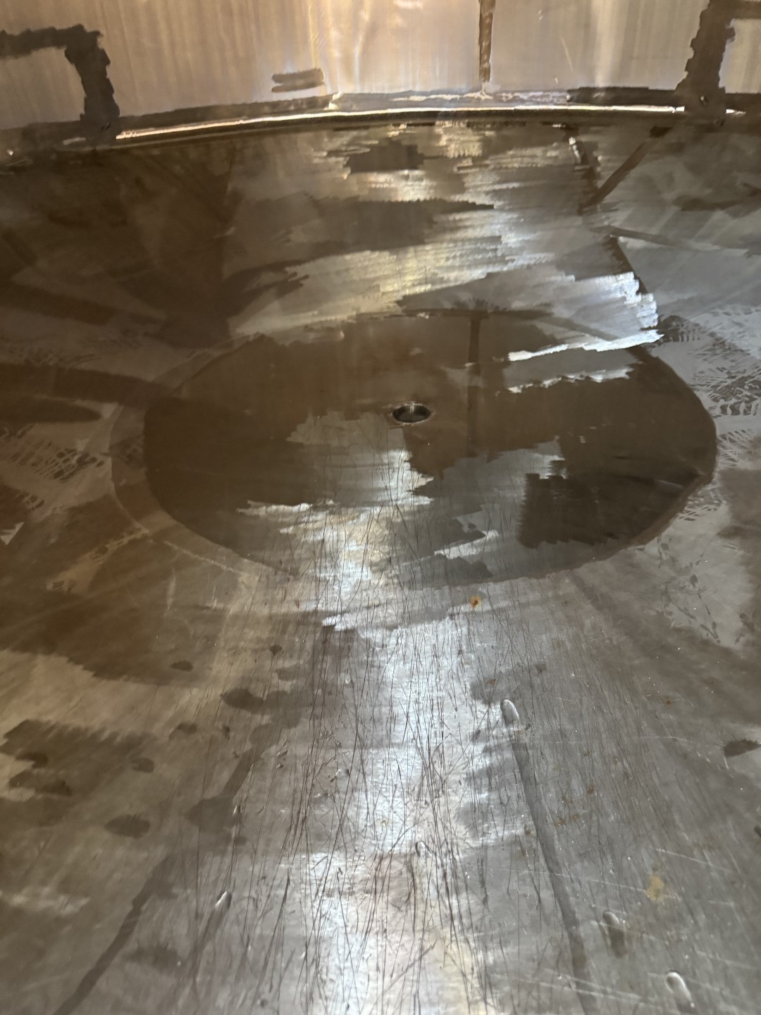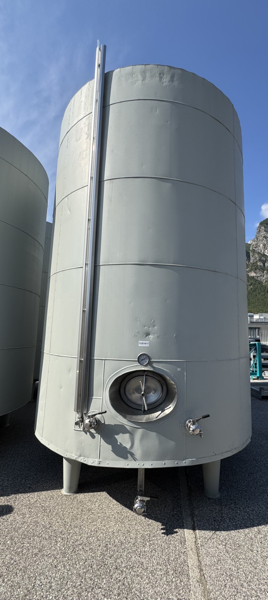 Serbatoio da stoccaggio HL. 240 in acciaio inox. Fondo inferiore conico, chiusino superiore con sfiato, portella ellittica, scarico totale e scarico parziale 1″1/2 – GA 50, piedi chiusi fissi, termometro.